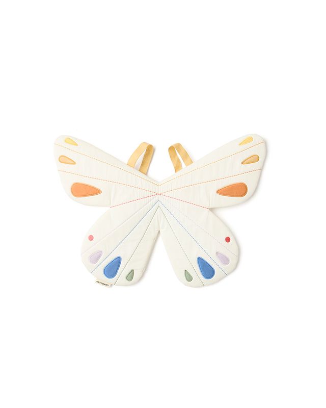 Queste ali di farfalla, travestimento di Kid's Concept, sono progettate per essere indossate sulla schiena con spallacci elastici, rendendo il travestimento semplice e comodo.
